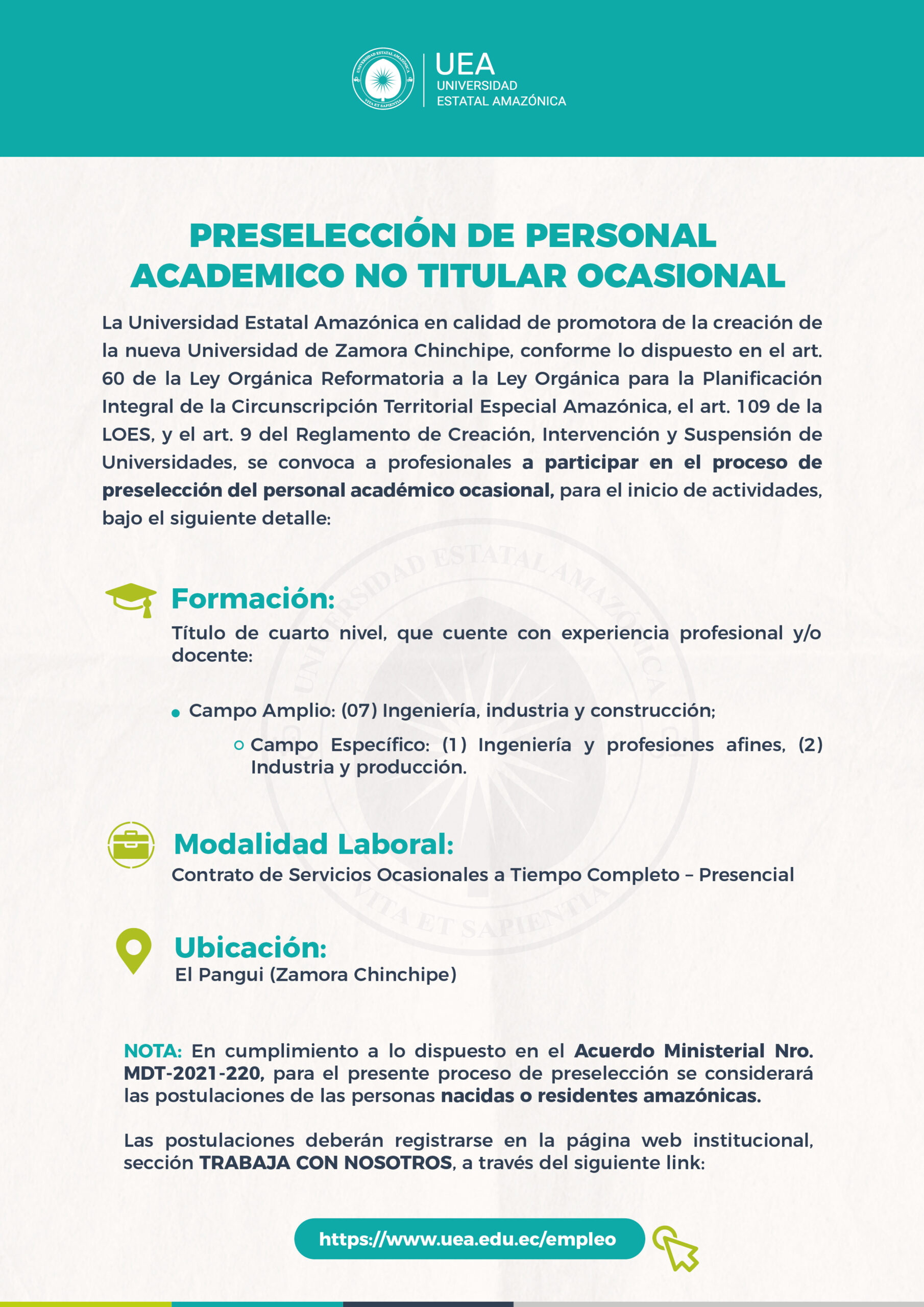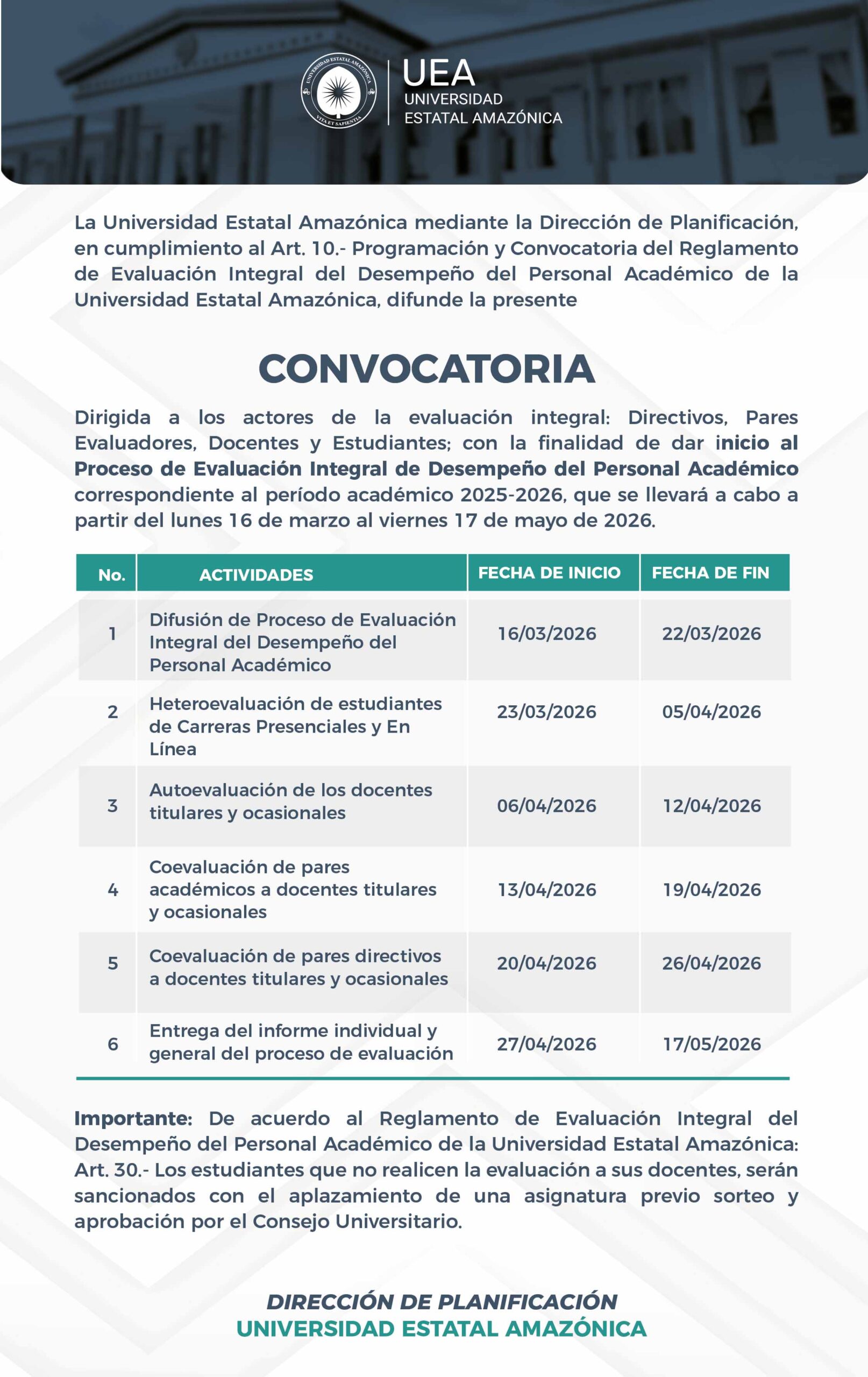 Generar Carnet Digital VER CRONOGRAMA CONVOCATORIA CRONOGRAMA RESOLUCIÓN 1 RESOLUCIÓN 2 PADRÓN FUNCIONARIOS PADRÓN ESTUDIANTES RESOLUCIÓN 3 RESOLUCIÓN 4 RESULTADOS VER INFORME VER CONVOCATORIA ZAMORA CHINCHIPE VER CONVOCATORIA SUCUMBÍOS POSTULA AQUÍ VER CONVOCATORIA REGLAMENTO PADRÓN ELECTORAL RESOLUCIÓN RESULTADOS RESULTADOS MÁS INFORMACIÓN CONVOCATORIA FORMATO INVESTIGACIÓN PARÁMETROS VINCULACIÓN FORMATO VINCULACIÓN PARÁMETROS INVESTIGACIÓN TUTORIAL ENCUESTA Más información DBU DESCARGA LA SOLICITUD Más información Agenda de Rectorado Recepción de documentos Disposición administrativa UEA RADIO Y TELEVISIÓN RESTABLECER CUENTA INSTITUCIONAL CARRERAS PRESENCIALES CARRERA DE AGROINDUSTRIA CARRERA DE AGROPECUARIA CARRERA DE INGENIERÍA AMBIENTAL CARRERA DE BIOLOGÍA CARRERA DE INGENIERÍA FORESTAL CARRERA DE INGENIERÍA QUÍMICA CARRERA DE ARQUITECTURA CARRERAS EN LÍNEA CARRERA DE ECONOMÍA CARRERA DE EDUCACIÓN INICIAL CARRERA DE EDUCACIÓN BÁSICA CARRERA DE TECNOLOGÍAS DE LA INFORMACIÓN CARRERA DE COMUNICACIÓN CARRERA DE TURISMO CARRERA DE TRABAJO SOCIAL Facebook Instagram Twitter Youtube Tiktok