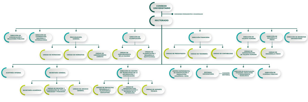 Liderar la gestión institucional de la Universidad Estatal Amazónica, para que la docencia, investigación y vínculos se desarrollen de manera sistémica, facilitando el cumplimiento de los objetivos institucionales, mediante procesos consensuales de toma de decisiones.