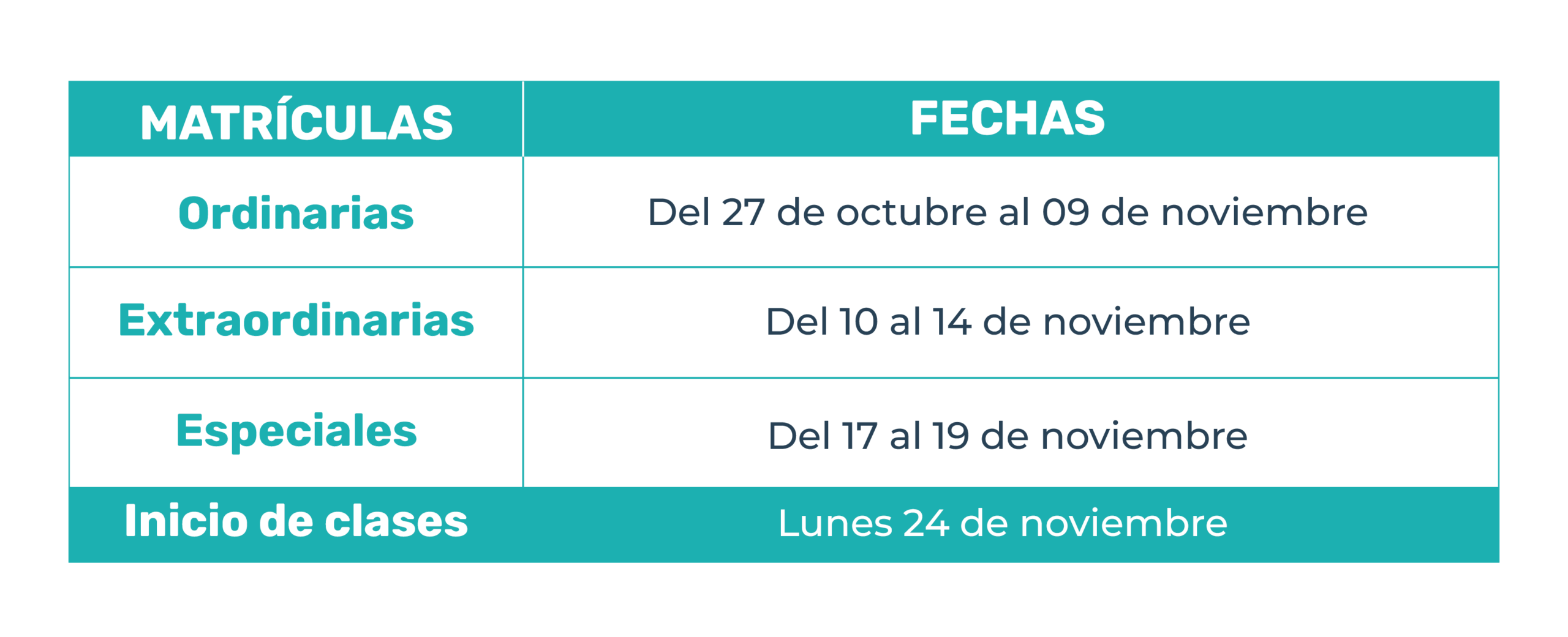 El período de matrícula se llevará a cabo del 27 de octubre al 19 de noviembre de 2025, de acuerdo con el calendario académico aprobado por el Honorable Consejo Universitario.